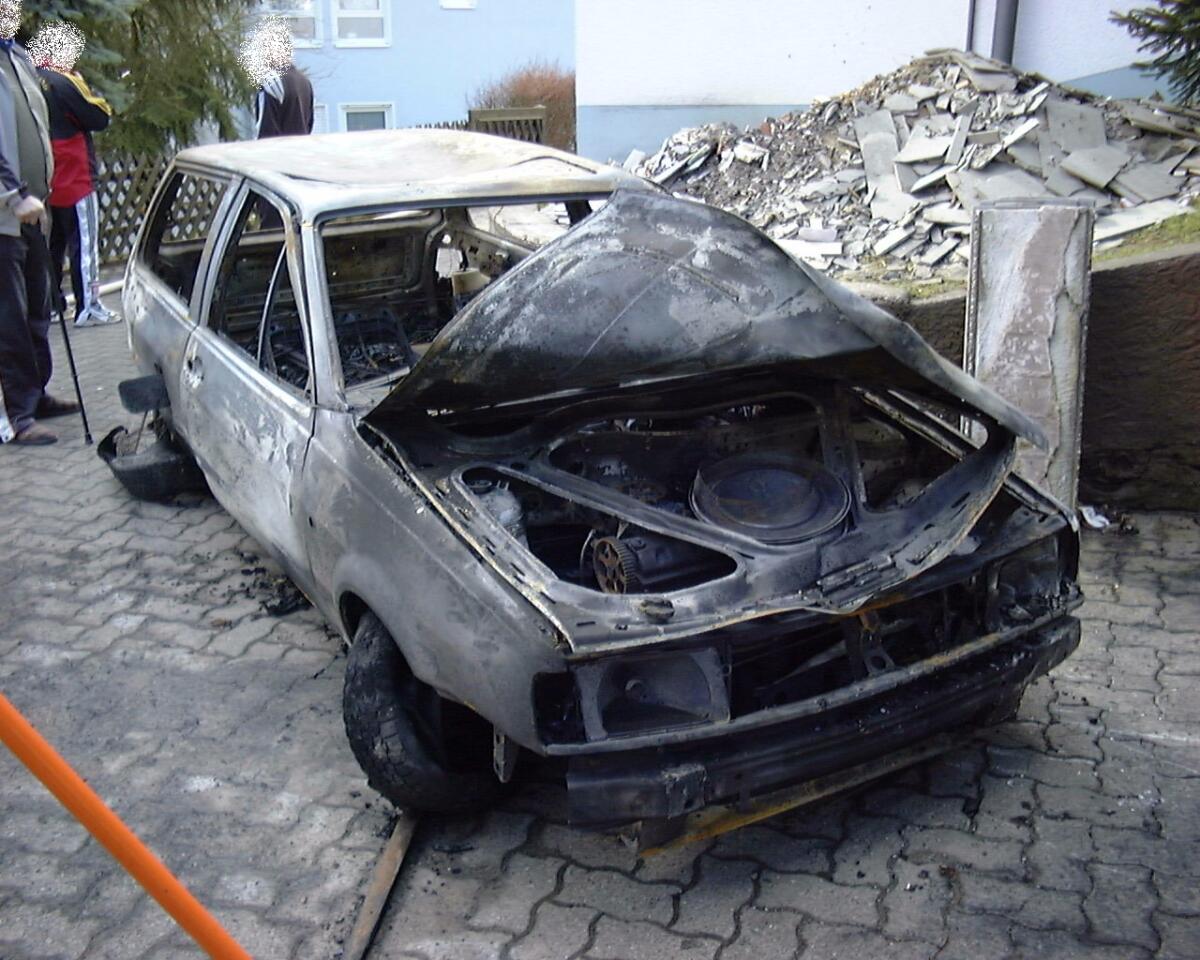 Zu einem Garagenbrand kam es am 23.02.2002 um ca. 21 Uhr in Aura. Durch das schnelle Eingreifen der Auraer Wehr konnte ein Übergreifen auf benachbarte Gebäude erfolgreich verhindert werden. Die engen Straßenverhältnisse an der Einsatzstelle gestalteten den Einsatz allerdings schwierig. Für mehr Personal, als das eingesetzte der Feuerwehr Aura, war schlichtweg kein Platz. Die Brandbekämpfung konnte auch nur von der Hofseite aus durchgeführt werden.