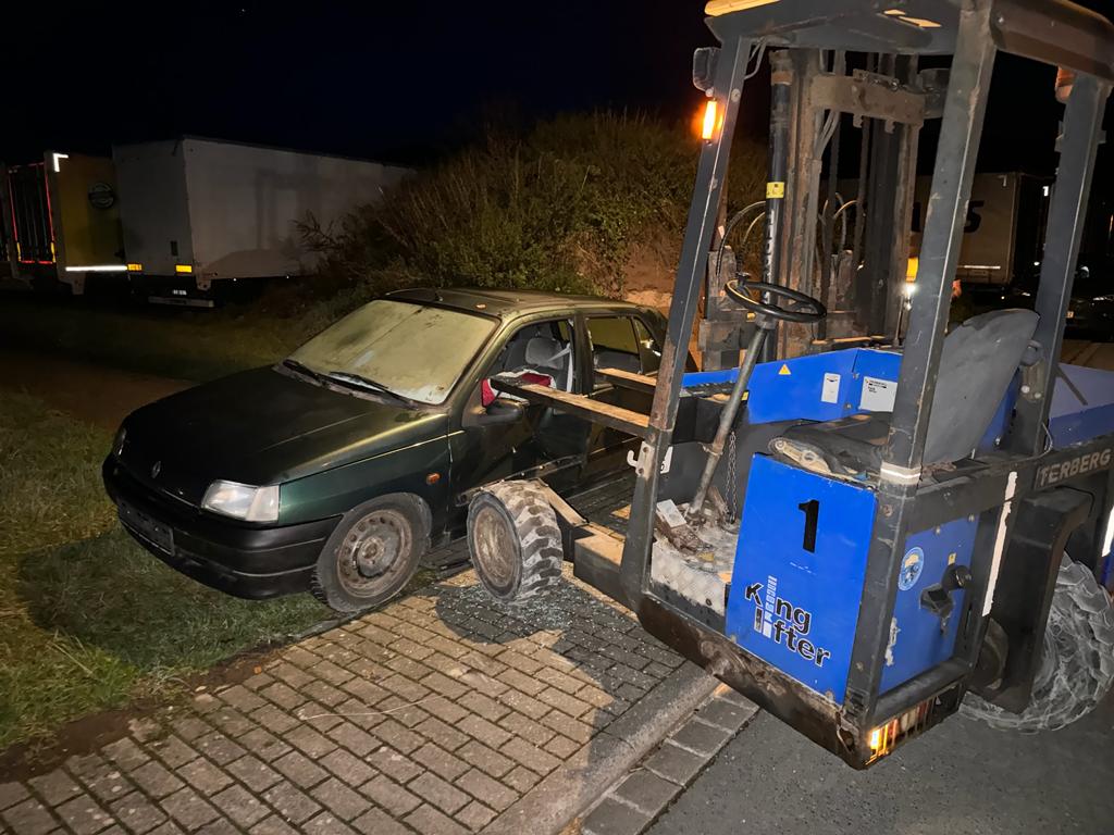Die Einsatzmeldung schickte uns nach Mittelsinn zu einem Verkehrsunfall im Gewerbegebiet. Ein Gabelstapler kollidierte hier mit einem Fahrzeug. Der Fahrer des PKW wurde bei dem Unfall in seinem Fahrzeug eingeklemmt. Der Fahrer des Gabelstapler flüchtete.